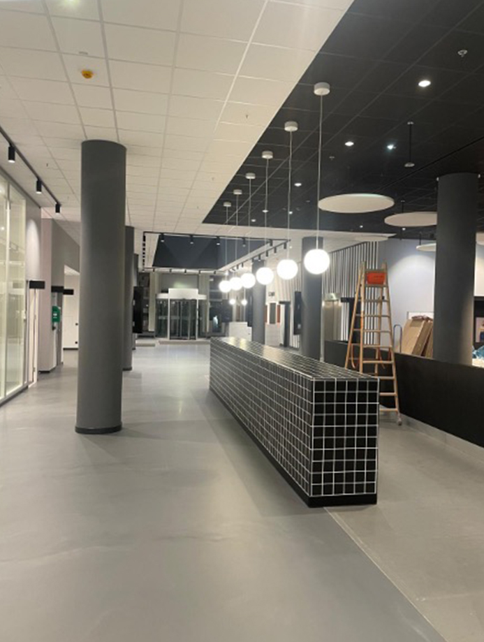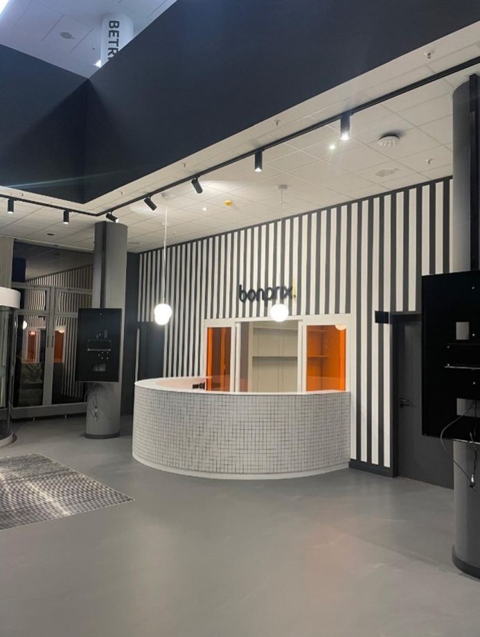 Der erfolgreiche Umbau und die Modernisierung des Empfanges für bonprix wurden termingerecht abgeschlossen. Der Empfangsbereich sowie der Hauptflur wurden vollständig modernisiert und durch innovative Beleuchtung aufgewertet. Sicherheitstechnische Anlagen wie Sprachalarmierung, Brandmeldeanlage und Sprinklertechnik wurden während des laufenden Betriebs in die Gesamtanlage integriert.